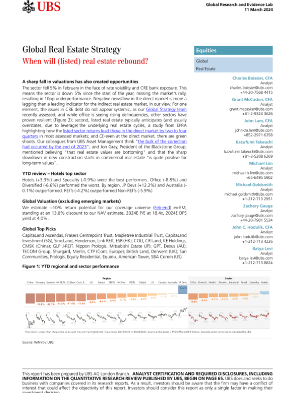 【UBS AG London Branch】【20240311】Global Real Estate Strategy When will (listed) real estate rebound?-76页