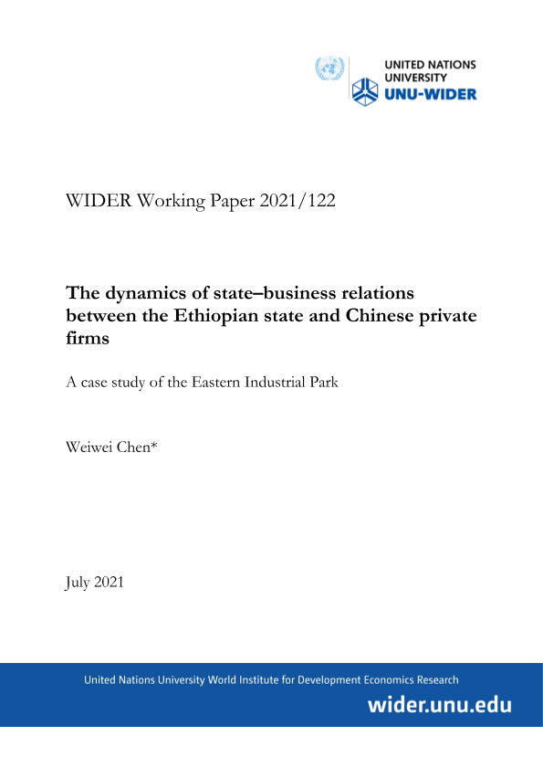【United Nations University World Institute for Development Economics Research】【20210701】The dynamics of state–business relations between the Ethiopian state and Chinese private firms-30页