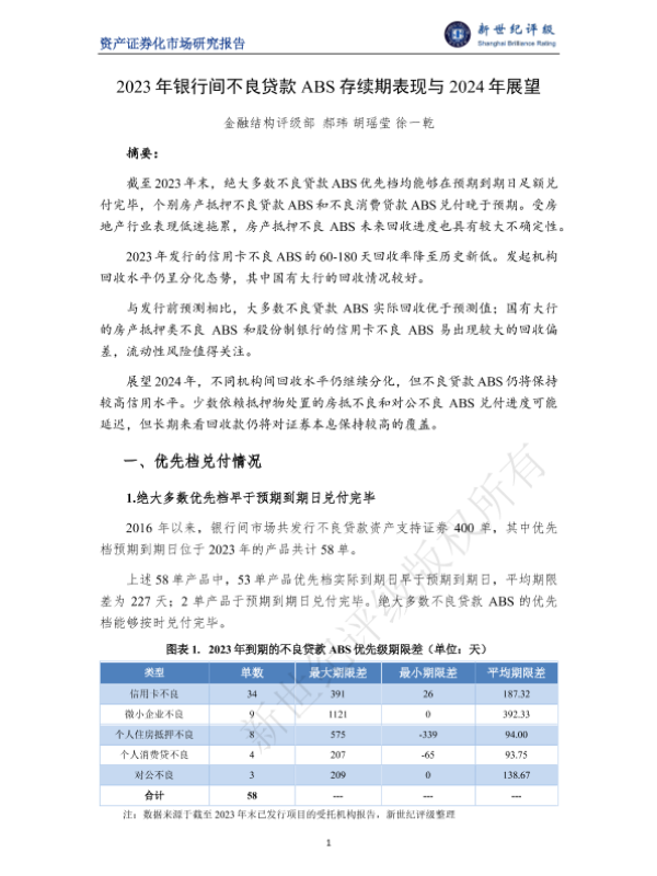 【金融结构评级部】【20230101】2023年银行间不良贷款ABS存续期表现与2024年展望-8页