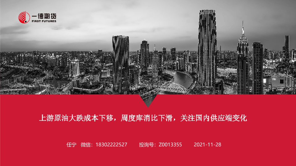 【一德期货】【20211128】上游原油大跌成本下移,周度库消比下滑,关注国内供应端变化-20页
