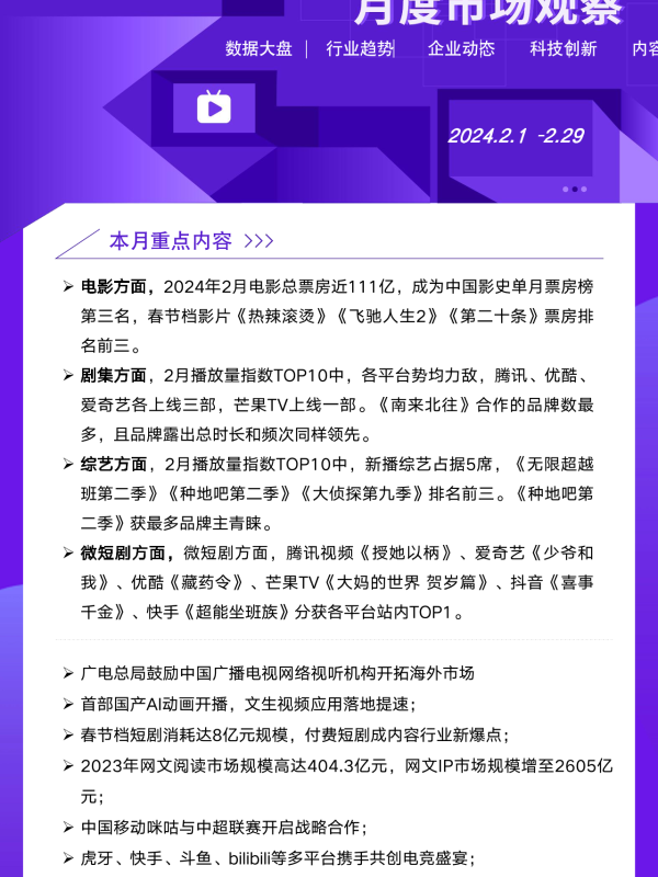 【艺恩ENDATA】【202402】2024年2月文娱行业市场观察-16页