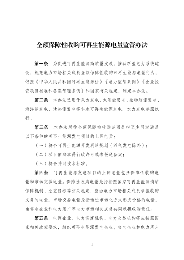 【国家能源局】【202403】全额保障性收购可再生能源电量监管办法-6页