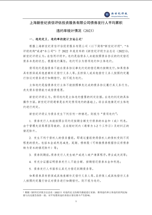 【新世纪评级】【20230101】上海新世纪资信评估投资服务有限公司债券发行人平均累积违约率统计情况(2023)-8页