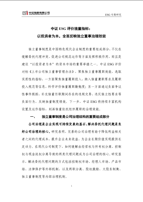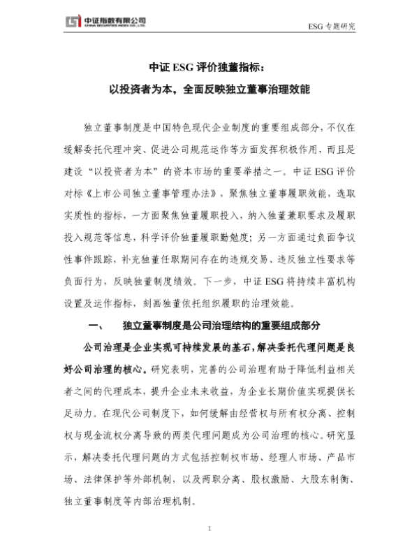 【中证指数】【202308】中证ESG评价独董指标:以投资者为本,全面反映独立董事治理效能-9页