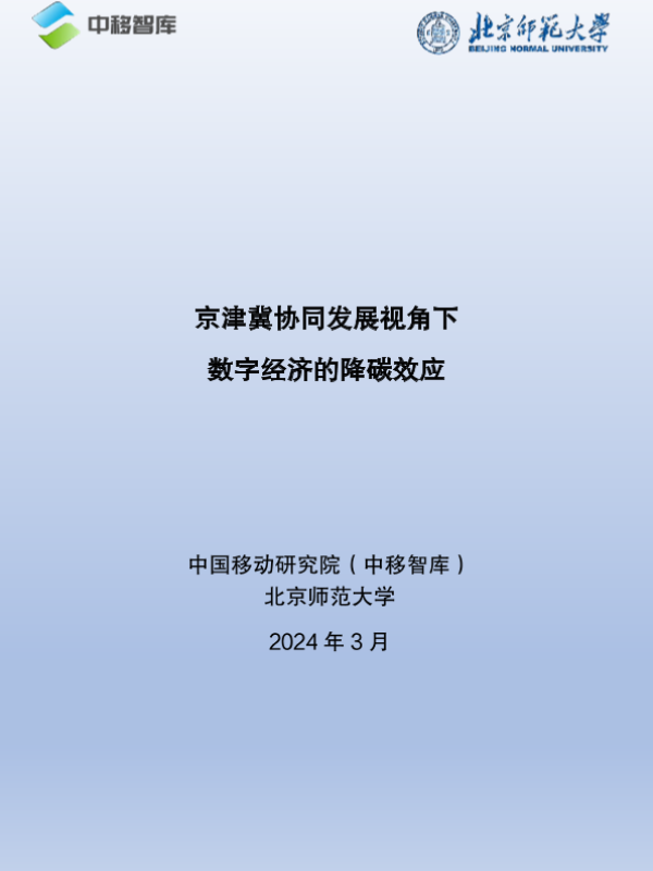 【中国移动研究院(中移智库),北京师范大学】【20240301】京津冀协同发展视角下数字经济的降碳效应-53页