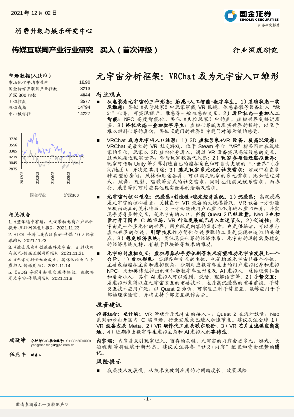 【国金证券】【20211202】传媒互联网产业行业深度研究:元宇宙分析框架,VRChat或为元宇宙入口雏形-33页