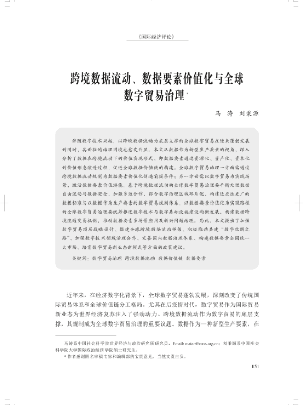 【马涛】【202402】跨境数据流动、数据要素价值化与全球数字贸易治理-26页