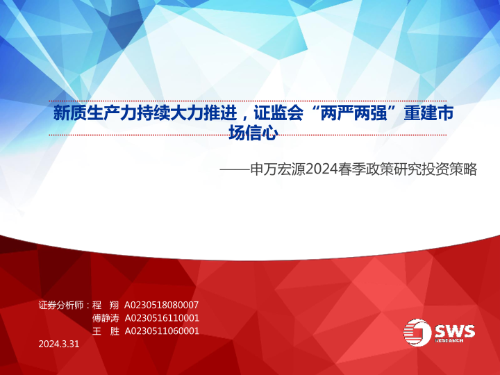 【申万宏源】【20240331】2024春季政策研究投资策略:新质生产力持续大力推进,证监会“两严两强”重建市场信心-40页