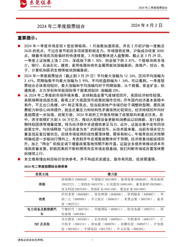 【东莞证券】【20240402】2024年二季度股票组合-34页