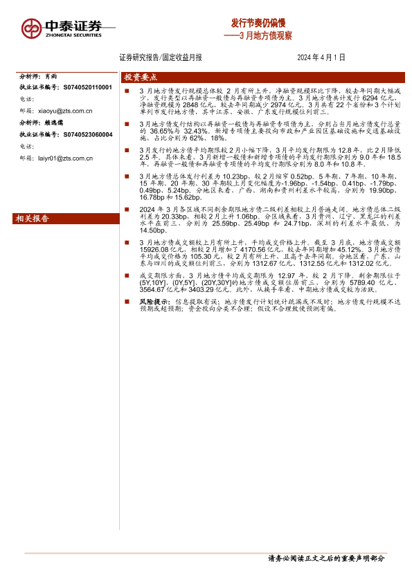 【中泰证券】【20240401】3月地方债观察:发行节奏仍偏慢-14页