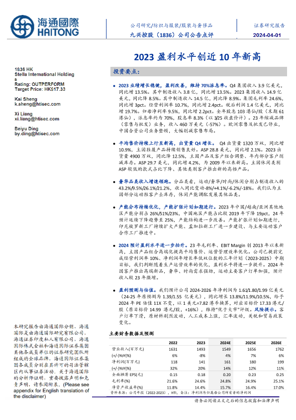 【海通国际】【20240401】九兴控股(1836.HK)公司公告点评:2023盈利水平创近10年新高-11页