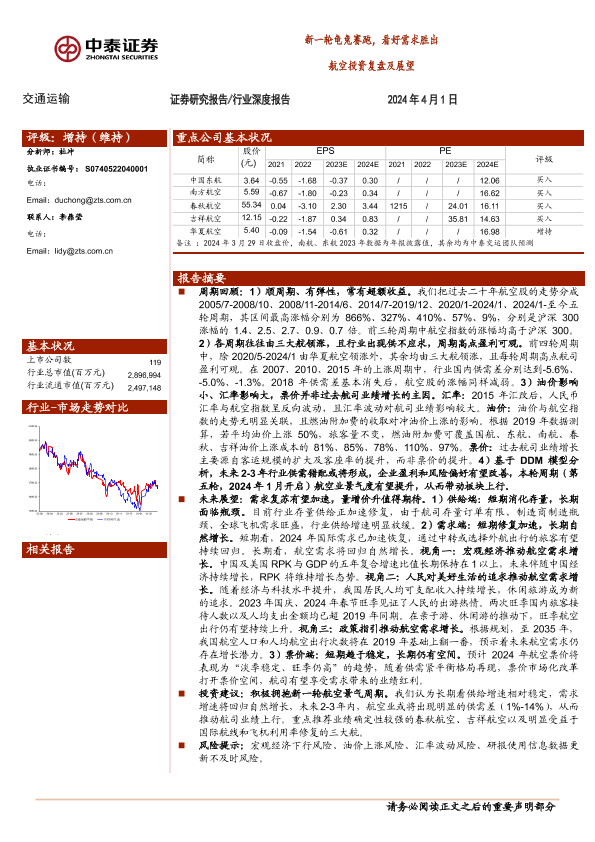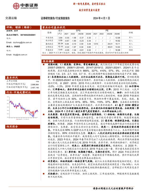 【中泰证券】【20240401】交通运输行业航空投资复盘及展望:新一轮龟兔赛跑,看好需求胜出-40页