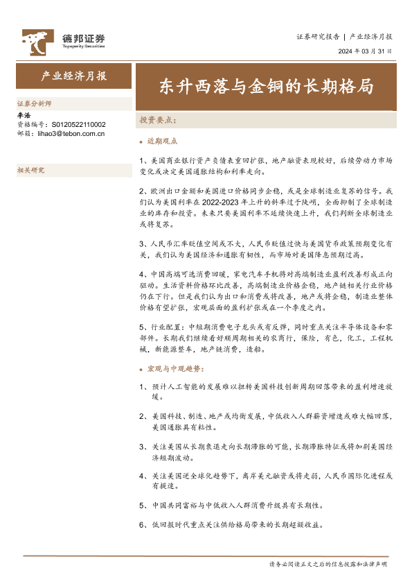 【德邦证券】【20240331】产业经济月报:东升西落与金铜的长期格局-13页