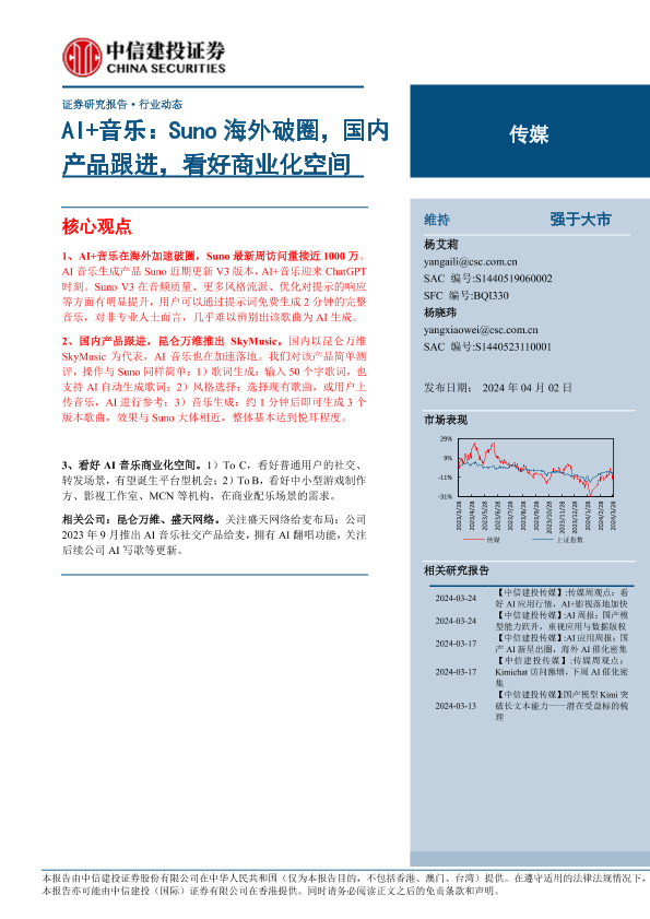【中信建投证券】【20240402】传媒行业AI+音乐:Suno海外破圈,国内产品跟进,看好商业化空间-11页