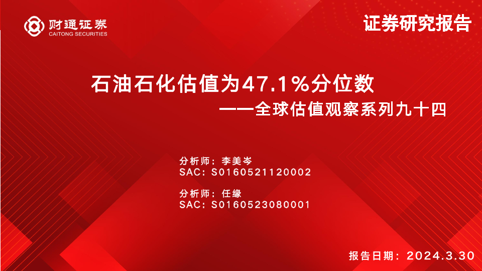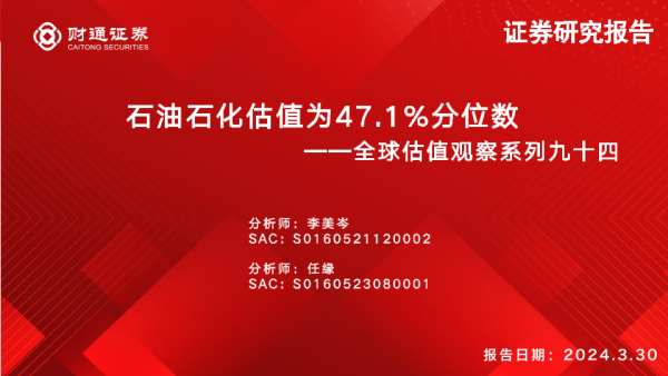 【财通证券】【20240330】全球估值观察系列九十四:石油石化估值为47.1%分位数-27页