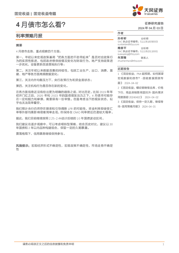 【天风证券】【20240403】利率策略月报:4月债市怎么看?-21页