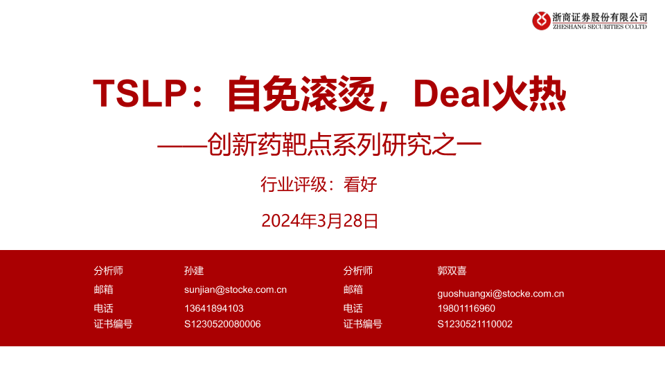 【浙商证券】【20240328】医药行业创新药靶点系列研究之一-TSLP:自免滚烫,Deal火热-21页