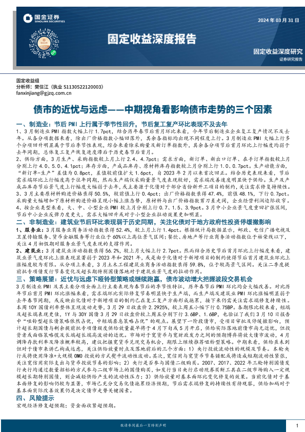 【国金证券】【20240331】固定收益深度报告:中期视角看影响债市走势的三个因素,债市的近忧与远虑-14页
