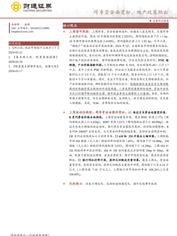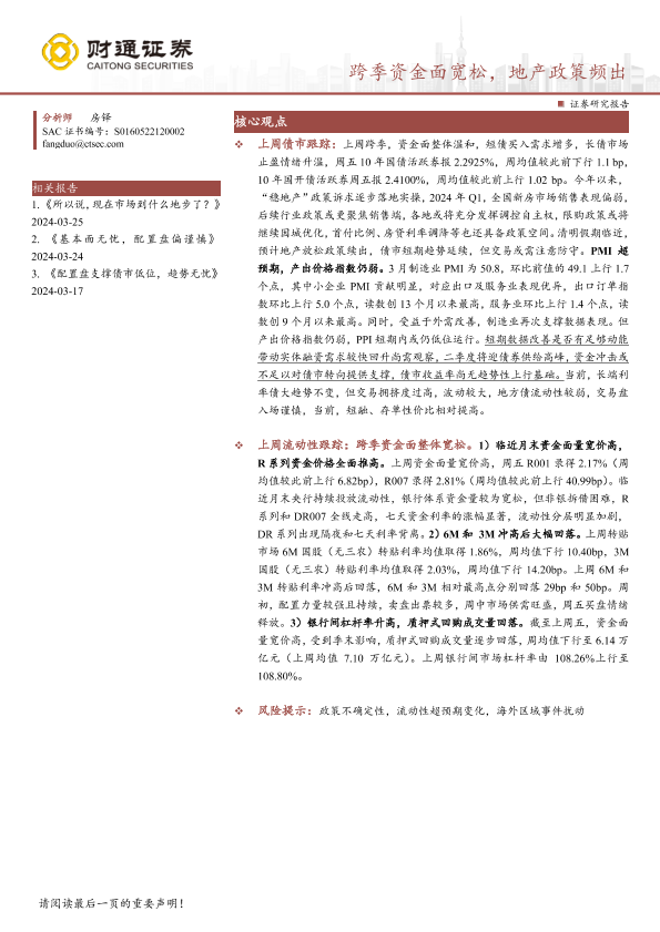 【财通证券】【20240401】固收定期报告:跨季资金面宽松,地产政策频出-15页