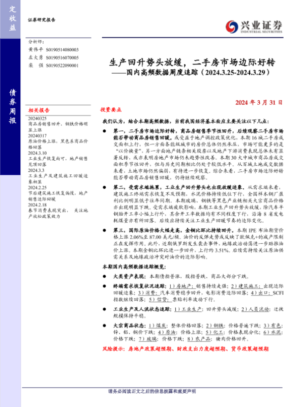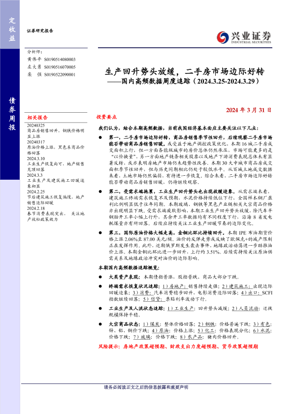 【兴业证券】【20240331】生产回升势头放缓,二手房市场边际好转——国内高频数据周度追踪(2024.3.25-2024.3.29)-20页