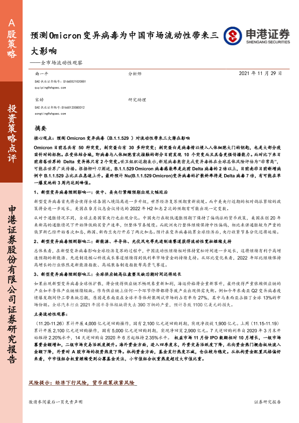 【申港证券】【20211129】全市场流动性观察:预测Omicron变异病毒为中国市场流动性带来三大影响-33页