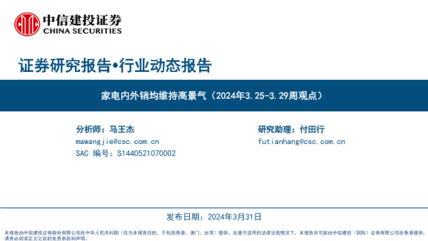【中信建投证券】【20240331】家电行业:家电内外销均维持高景气-34页