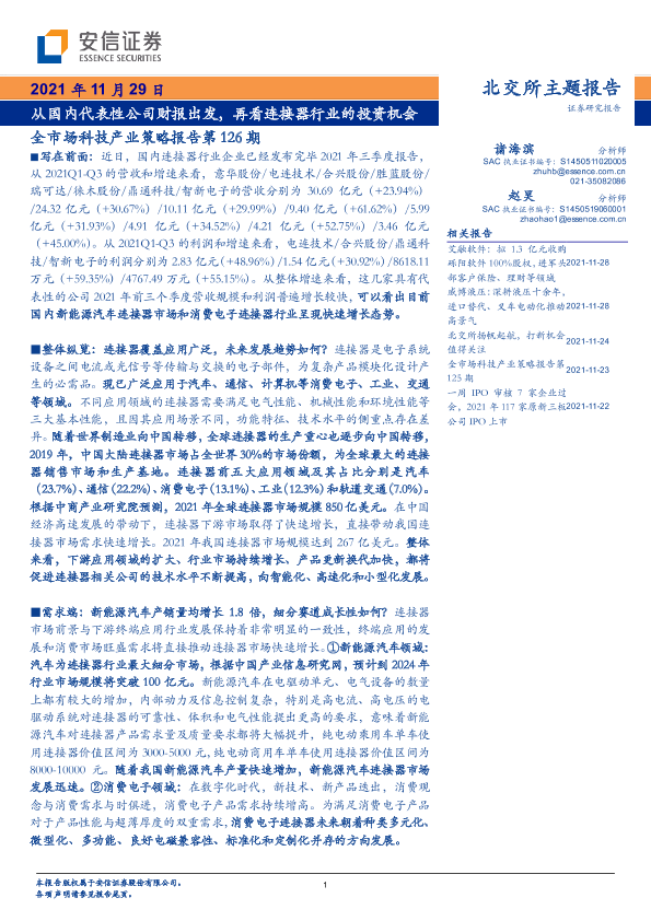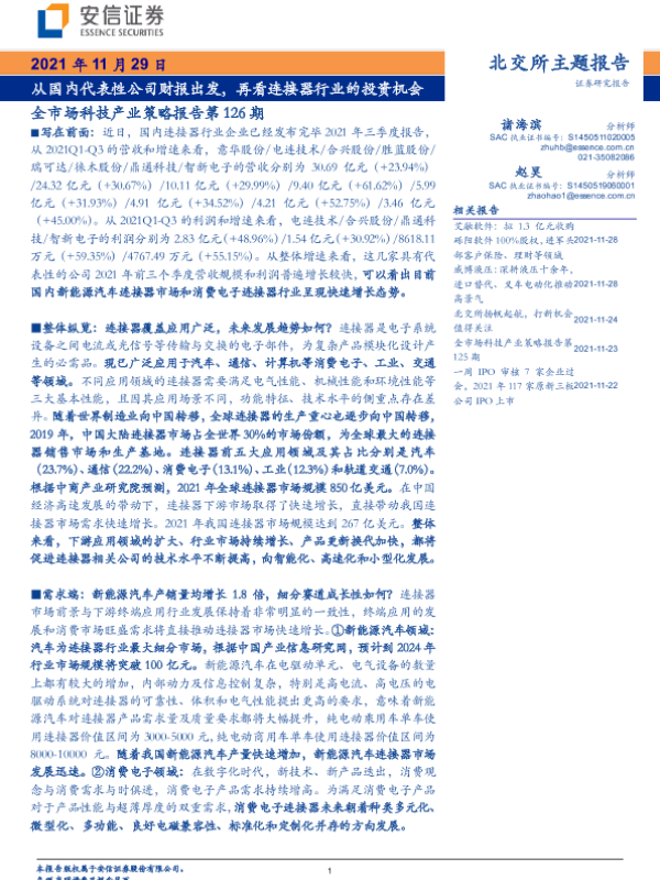 【安信证券】【20211129】全市场科技产业策略报告第126期:从国内代表性公司财报出发,再看连接器行业的投资机会-26页