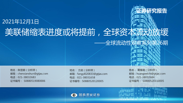 【国泰君安证券】【20211201】全球流动性观察系列第26期:美联储缩表进度或将提前,全球资本流动放缓-35页