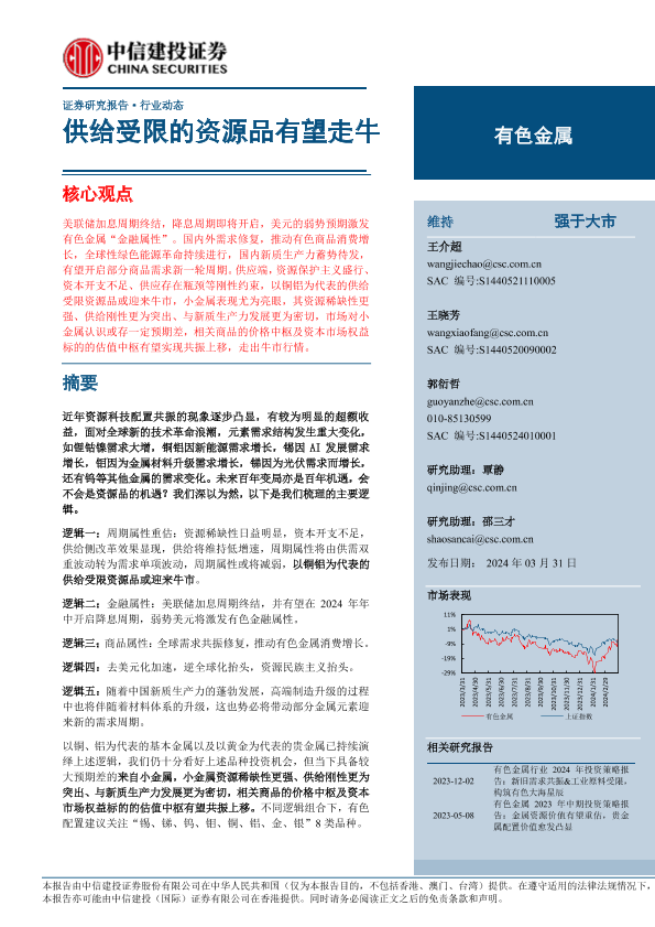 【中信建投证券】【20240331】有色金属行业:供给受限的资源品有望走牛-14页