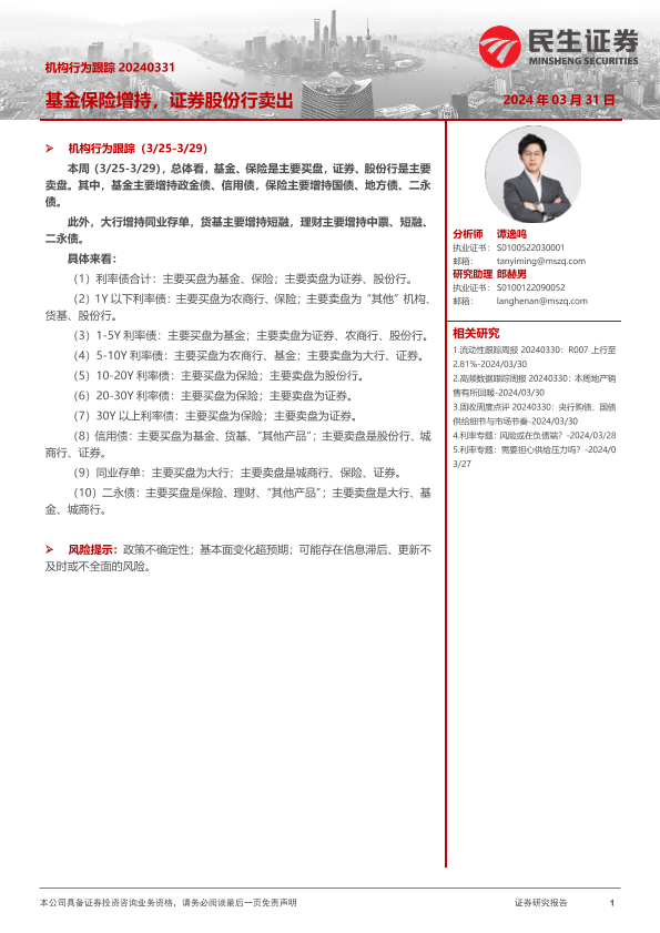 利率债 基金保险 机构行为 证券投资 证券股份