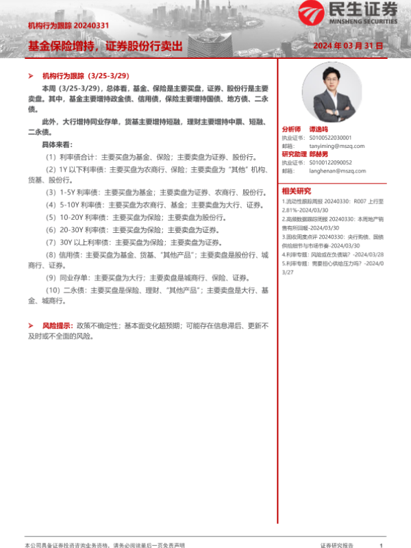 【民生证券】【20240331】机构行为跟踪:基金保险增持,证券股份行卖出-11页