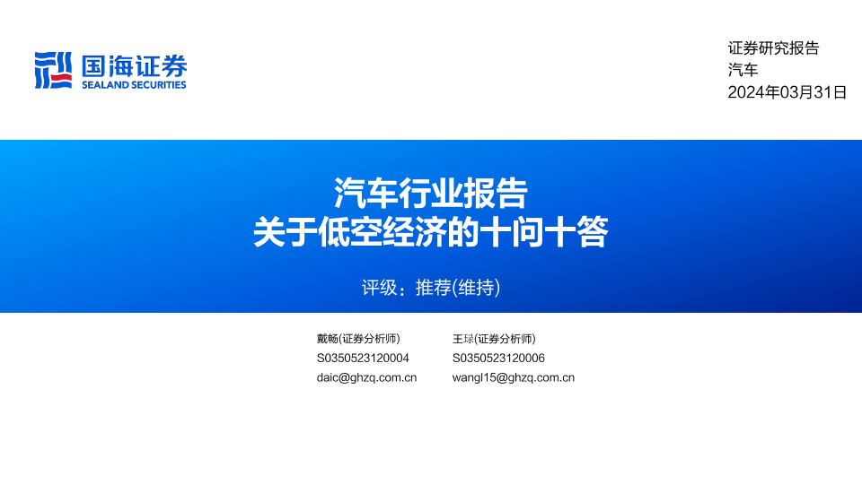 【国海证券】【20240331】汽车行业报告:关于低空经济的十问十答-30页