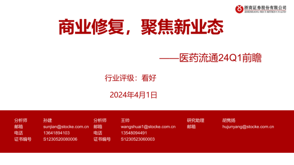 【浙商证券】【20240401】商业修复,聚焦新业态——医药流通24Q1前瞻-19页