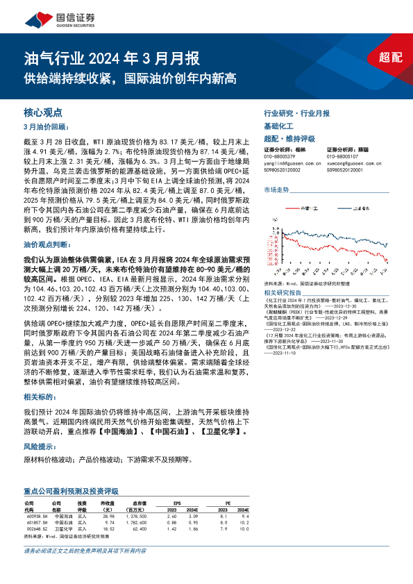 【国信证券】【202403】油气行业2024年3月月报:供给端持续收紧,国际油价创年内新高-24页