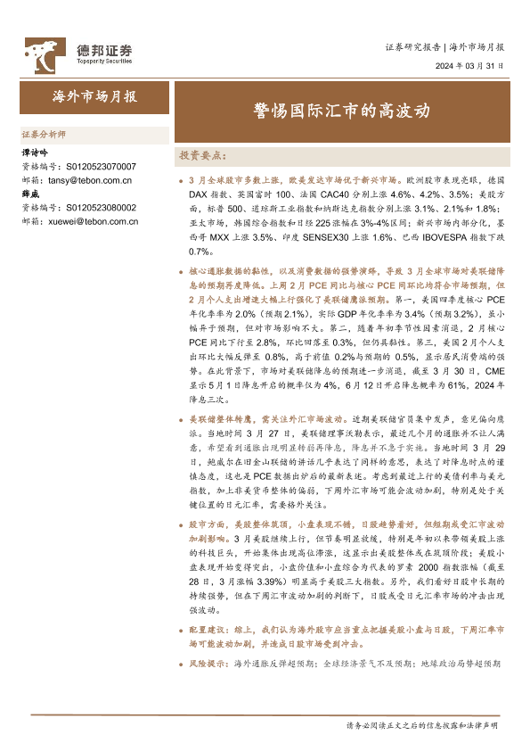 【德邦证券】【20240331】海外市场月报:警惕国际汇市的高波动-10页