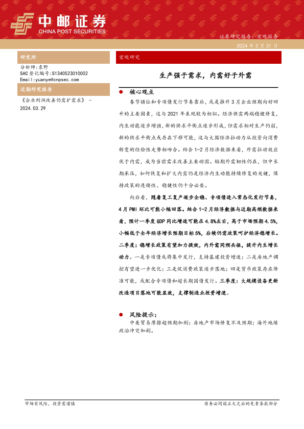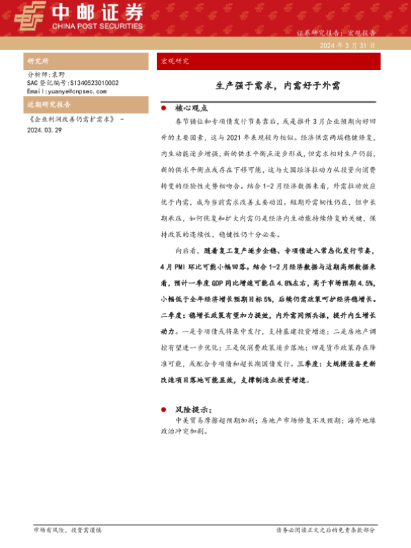 【中邮证券】【20240331】生产强于需求,内需好于外需-10页