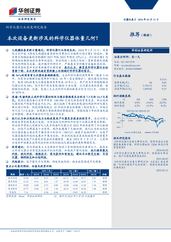 【华创证券】【20240331】科学仪器行业深度研究报告:本次设备更新涉及的科学仪器体量几何?-21页