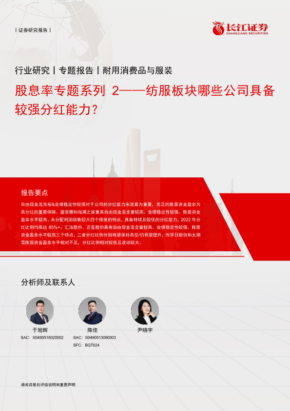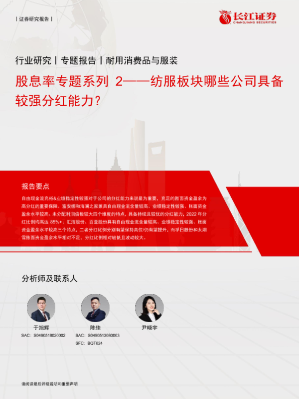 【长江证券】【20240329】耐用消费品与服装行业股息率专题系列2:纺服板块哪些公司具备较强分红能力?-10页