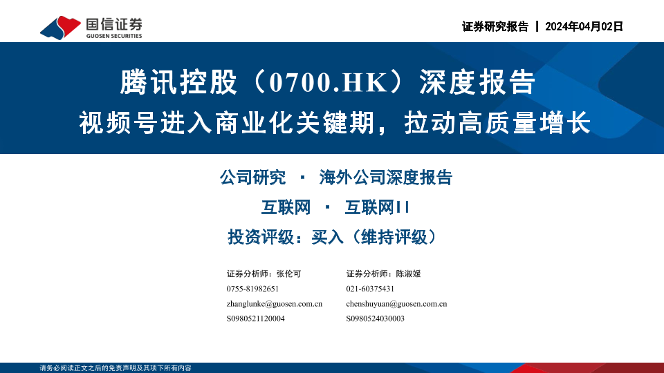 【国信证券】【20240402】腾讯控股(0700.HK)深度报告:视频号进入商业化关键期,拉动高质量增长-51页