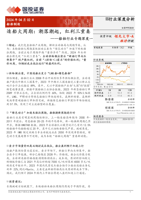 【国投证券】【20240402】船舶制造行业专题深度一:造船大周期,潮落潮起,红利三重奏-34页