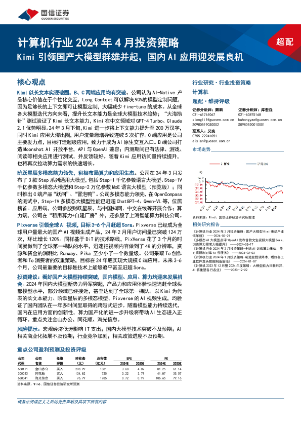 【国信证券】【20240329】计算机行业2024年4月投资策略:Kimi引领国产大模型群雄并起,国内AI应用迎发展良机-20页