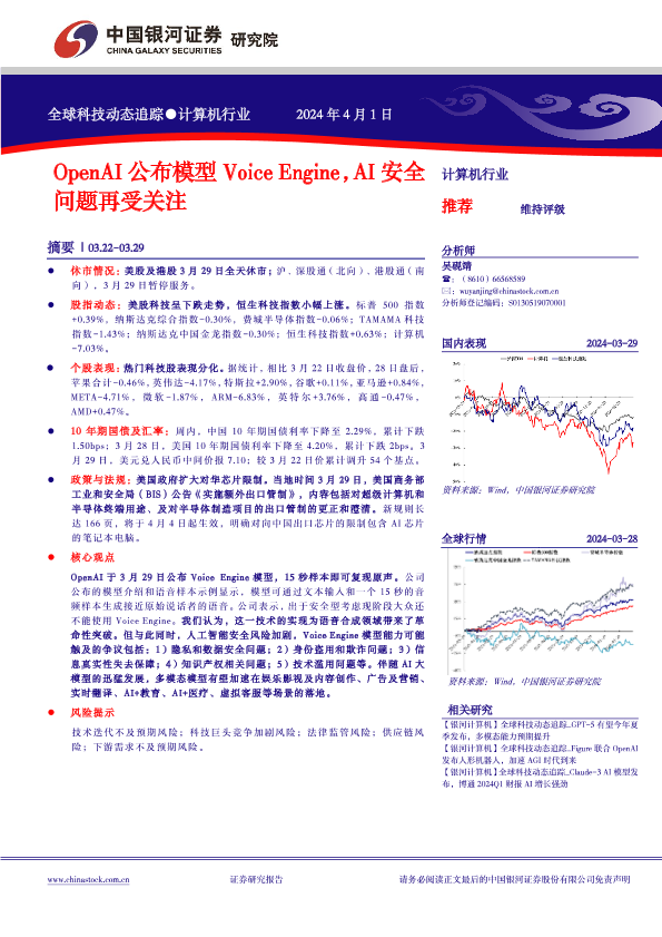 【银河证券】【20240401】计算机行业全球科技动态追踪:OpenAI公布模型VoiceEngine,AI安全问题再受关注-12页