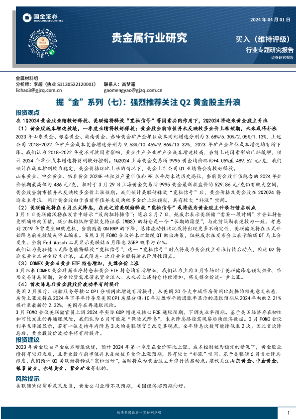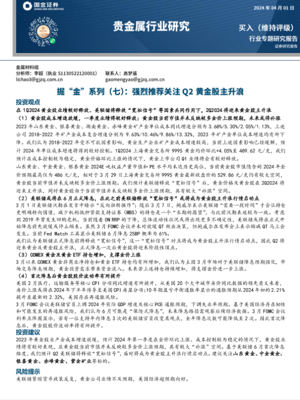 【国金证券】【20240104】贵金属行业掘“金”系列(七):强烈推荐关注Q2黄金股主升浪-29页