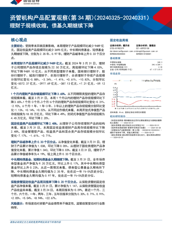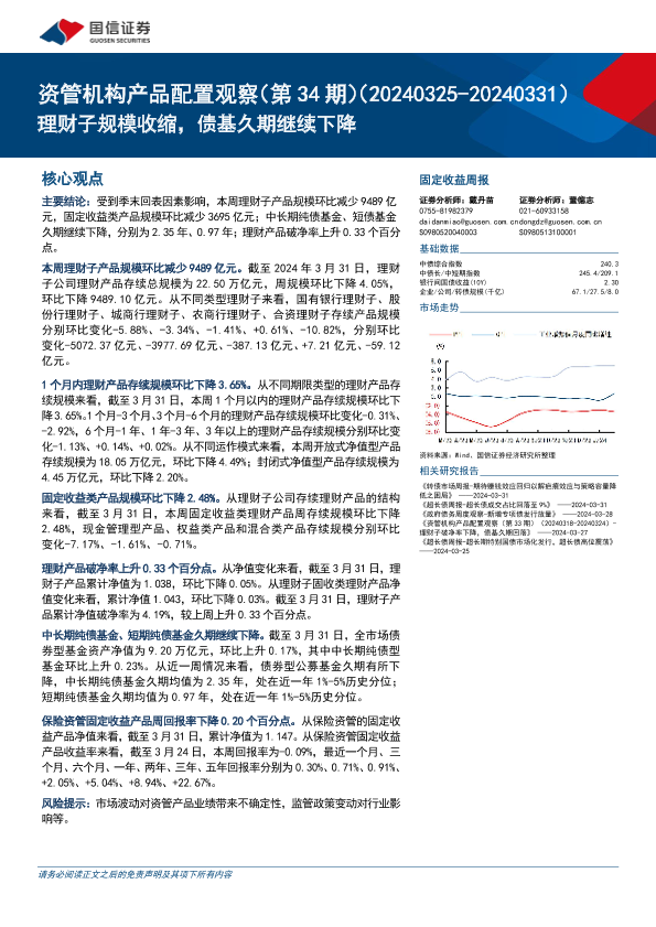 【国信证券】【20240403】资管机构产品配置观察(第34期):理财子规模收缩,债基久期继续下降-14页