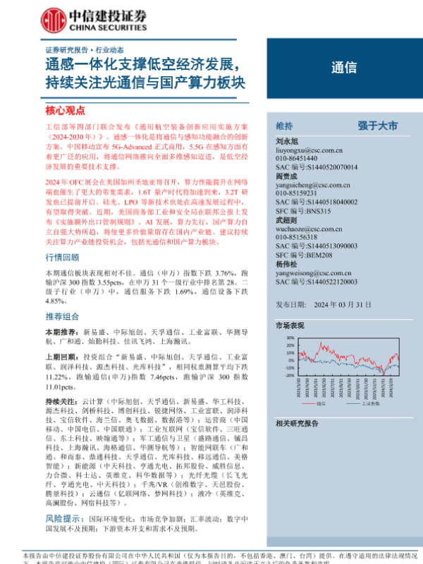【中信建投证券】【20240331】通信行业:通感一体化支撑低空经济发展,持续关注光通信与国产算力板块-18页