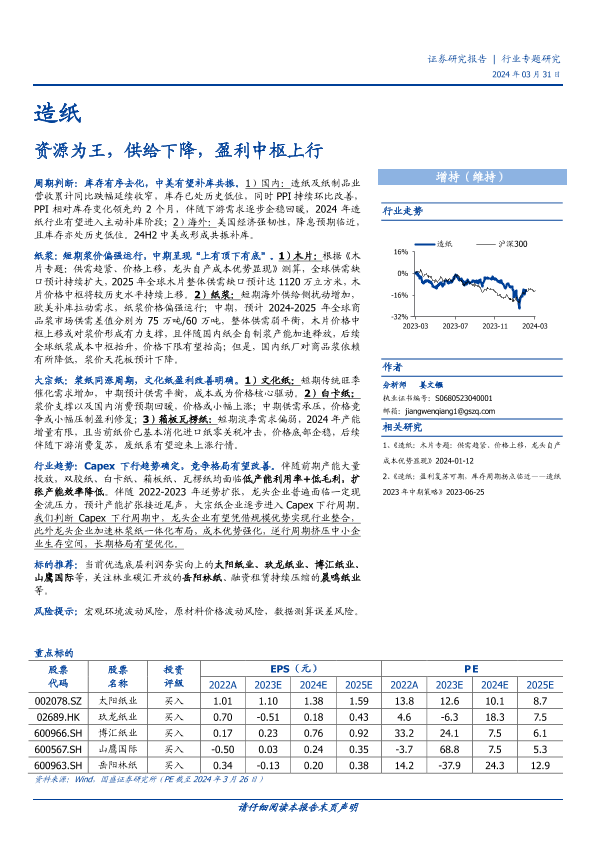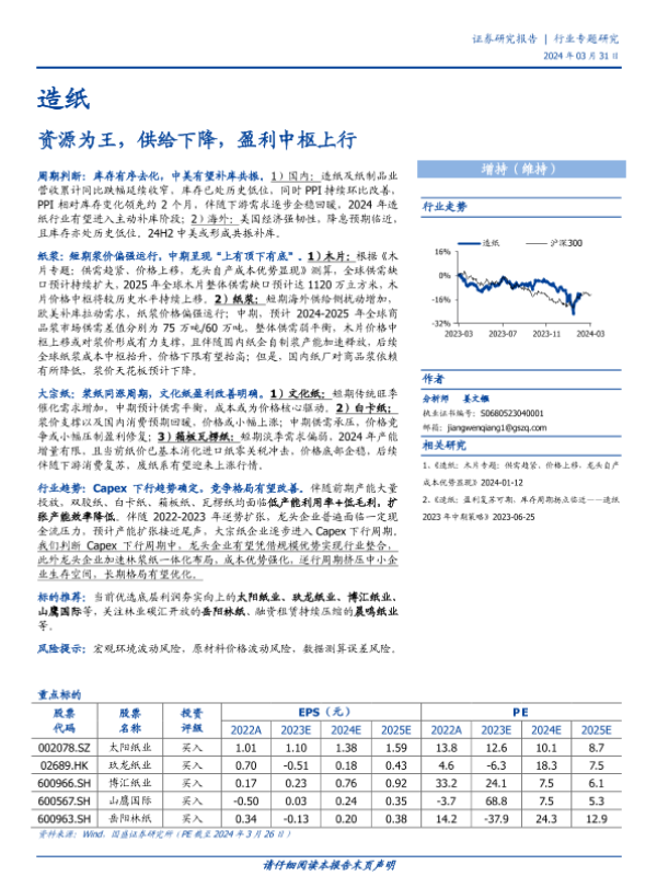 供需关系 库存周期 纸浆价格 资本市场 造纸行业