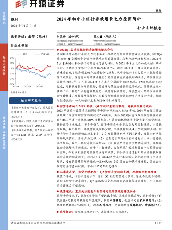 【开源证券】【20240401】2024年初中小银行存款增长乏力原因简析-13页