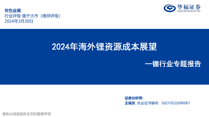 【华福证券】【20240330】锂行业专题报告:2024年海外锂资源成本展望-37页