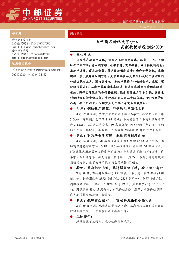 【中邮证券】【20240331】高频数据跟踪:大宗商品价格走势分化-13页