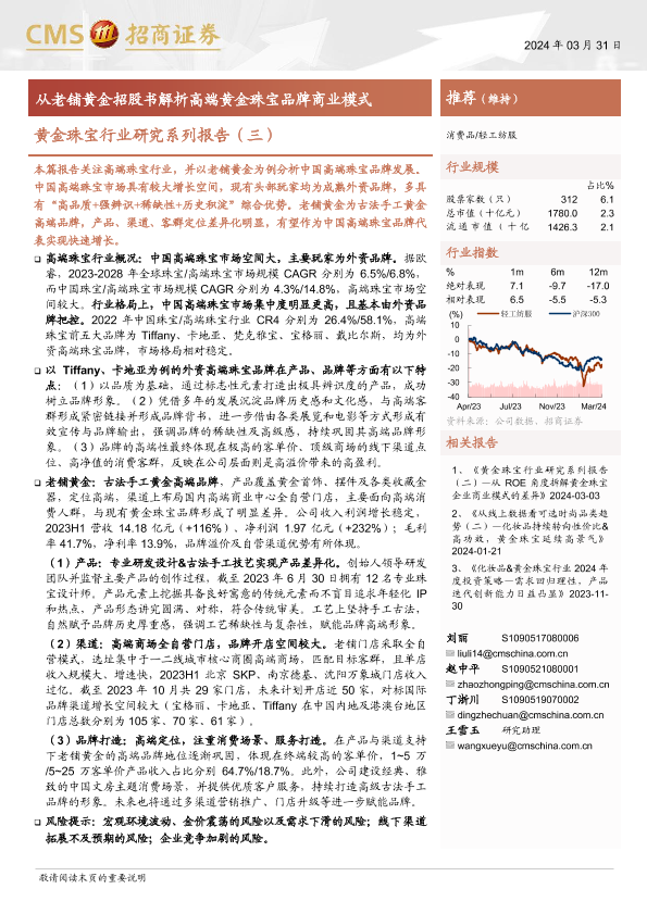 【海通证券】【20240331】黄金珠宝行业研究系列报告(三):从老铺黄金招股书解析高端黄金珠宝品牌商业模式-22页